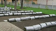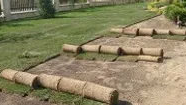 Маты готового газона раскладываются по участку на землю в приблизительном порядке, затем стыкуется. Газон укладывается в порядке «кирпичной кладки», края матов должны плотно прилегать друг к другу: недопустимо наложение краев газона друг на друга или свободное пространство между ними.